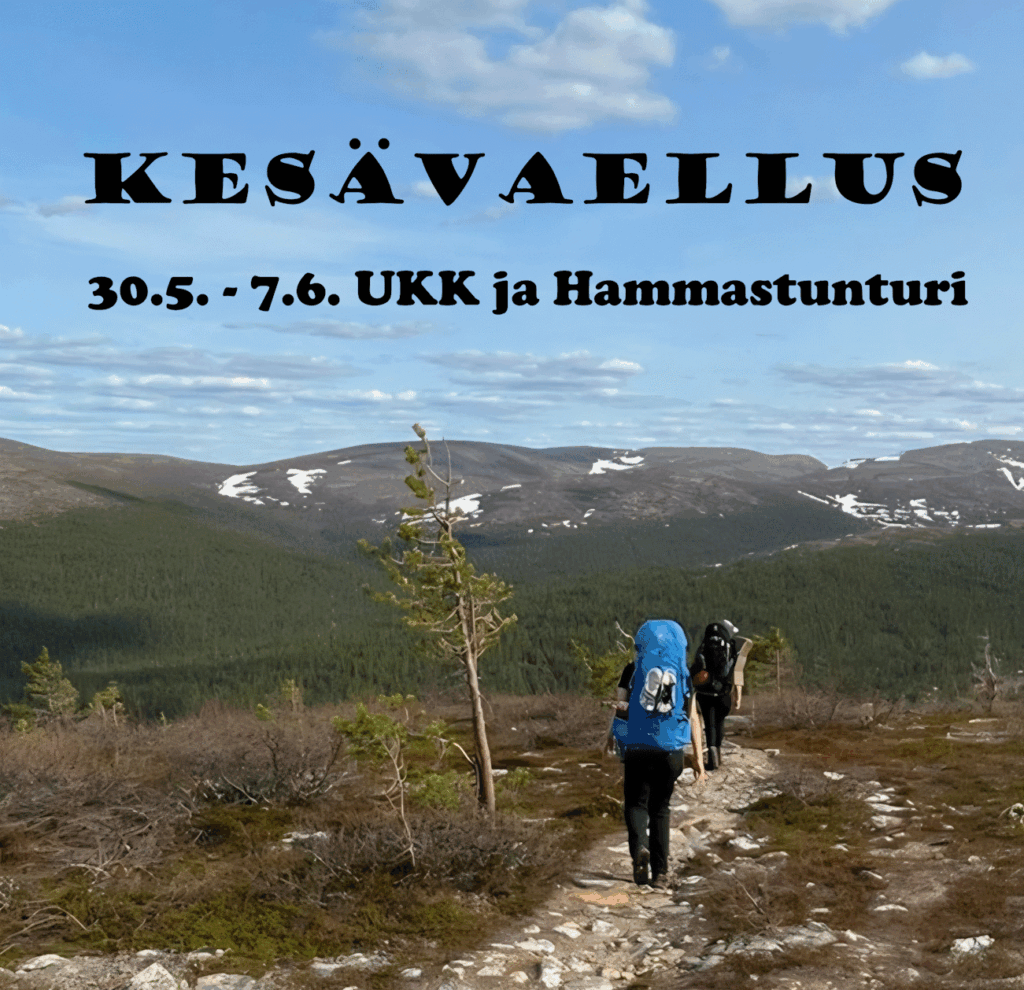 Tervetuloa Akateemisen Partiokillan (APK:n), Hydepakin ja Skinnarilan Lutusten yhteiselle Kesävaellukselle Lappiin 30.5. – 7.6!  Suuntaamme Urho Kekkosen kansallispuiston ja Hammastunturin erämaan loputtomiin tunturimaisemiin. Tule viettämään ikimuistoinen viikko kanssamme! Pääset huiputtamaan tuntureita ja voit antaa sielusi levätä viikon Lapin yöttömässä yössä. Varmista paikkasi ilmoittautumalla mahdollisimman pian, kuitenkin viimeistään perjantaina 1.5.